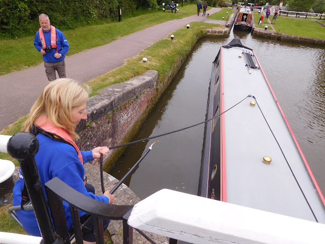 We too would be waiting at the half-way point for another few boats. The lockies have a slick system for getting downhill boats quickly into the layby area, using a hook to retieve the centre line and pulling the boat in.