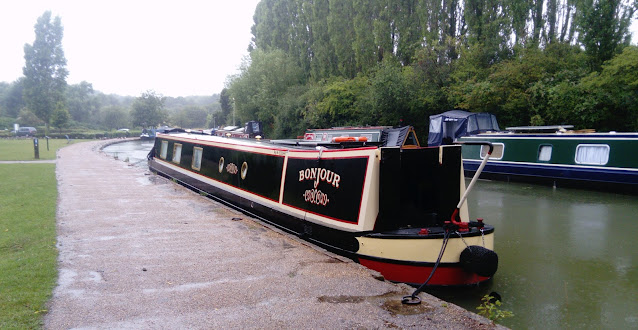 We woke up to sunshine, and were pleased to see the solar panel at work topping up the batteries, which were somewhat depleted after we ran the inverter for 3 hours yesterday to watch the tennis. We hadn’t far to go today, so got on with some jobs. With slight risk of rain, we took out the starboard hopper windows and I gave them and the frames a good clean. That's all the removable windows done now. Dave went down the engine hole with some wads of newspaper to clean up the engine bilge. Yesterday’s rain must have partially filled the deck drain channels with bits of leaf and debris, and then became so heavy that the drains were completely overwhelmed and so it was a bit wet down there. I started cleaning through the boat – Meg is moulting and handfuls of fur were sent floating, or rather blowing, down the canal.