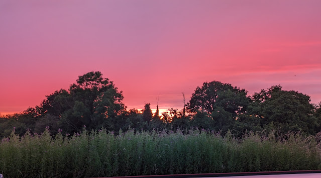 The internet keeps dropping in and out, so this won’t be posted tonight. There is a beautiful sunset, but the forecast overnight is for heavy rain. Glad we’re not under trees.
